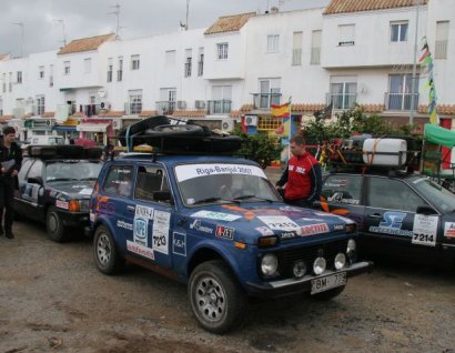 Nakts Spānijas autobāņos atgādināja kompjuterspēli ari ar Ņivu ātrumā ap 80 km/h.Ap 6 no rīta Ņivai atkal uzsprāgst labā priekšējā riepa. Tur pat uzliekam vienu 15” riteni un lēni dodamies uz tuvāko stāvlaukumu nomainīt pārējos riteņus, jo rezerves kameru vairs nav. Ceļš visu laiku ved kalnup un rodas sajūta, ka ierauksim tieši debesīs. Vēl reizi pārbaudām riepas. Tālāk brauc Igors, jo es „noplīstu”. Esam netālu no Granadas. Ap pusdeviņiem pamostos jau pie Malagas. Saule uzausisi un rādās, ka būs jauka diena. Ap pl. 12 esam atbraukuši viesnīcā Tarifā. Pirmais posms ir veikts!!! Ceļa pašas beigas bija pilnīgs murgs, lija lietus – šķiet, ka Gibraltārs kā Britānijas daļa atrodas citā klimatiskajā zonā, vai arī tur kā virs Adamsu mājas visu laiku karājas lietus mākonis. Nu, lūk, ceļš kā rallija dopā, attālumi starp līkumiem 30 – 50 m, lietus gāž, un es ar pārkrautu Ņivu uz slikiem... Kas bijis, bijis, bet rokas un kājas trīc...