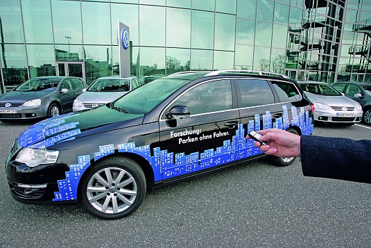 Volkswagen, kas jau ir laidis klajā daļēji automātisku parkošānās palīgsistēmu “Park Assist” savos Touran, Tiguan, Passat un Passat Variant modeļos, tagad Hannoverē prezentē koncepcijas sistēmu, kas spēj noparkoties perpendikulāri – un to dara pilnībā automātiski. Vienīgais, ko nepieciešams izdarīt vadītājam, ir uzstādīt izvēlēto parkošanās vietu navigācijas sistēmas ekrānā, uzstādīt automātiskās transportlīdzekļa transmisijas (DSG) kloķi uz "P" un izkāpt no automobiļa. Vadītājs, protams, var arī palikt automobilī līdz tas ir veikli iebraucis tā vietā.