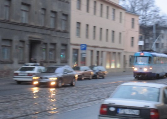 Lai tādā veidā noparkotu auto, jāveic visai bīstams manevrs pāri abiem tramvaja sliežu virzieniem + pretējā virziena kustības joslai. Ja kaut ko līdzīgu atļautos ierindas autovadītājs - sodā saņemtu 40 ls + 2 soda punktus.