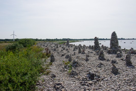 Nākamā brūnā ceļa norāde aizved mūs pie jūras krasta. Skatam paveras elpu aizraujošs skats - gar visu jūras krastu, cik vien var redzēt, slejas neskaitāmi cilvēku roku darināti akmeņu krāvumi piramīdu veidā, kas līdzinās slavenajiem troļļu tūriem Norvēģijā. Nedaudz pabaudot skaistos veidojumus, dodamies tālāk uz Kuresāri.