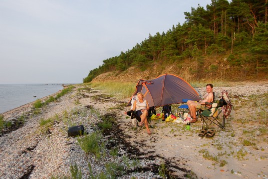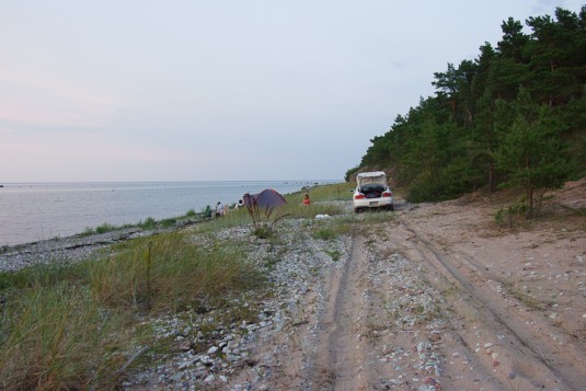 Apkārt mežs, jūra, akmeņi un klusums. Saprotam, ka šeit arī nakšņosim, neviena netraucēti. Un atkal klāt ir burvīgs vakars, pastaiga gar jūru, dzintara un akmens fosīliju meklēšana, saulriets, neskaitāmas zvaigznes un klusums...
