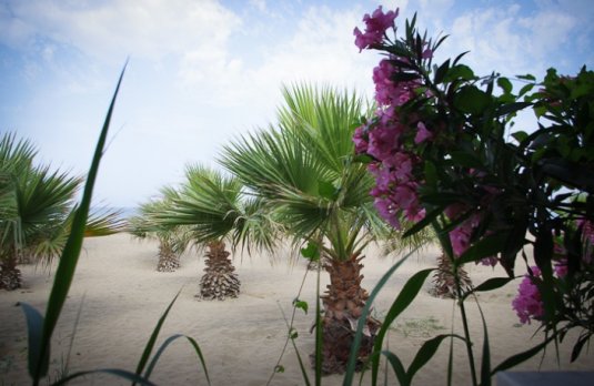 Rīts pie Egejas jūras - baltas smiltis, palmas, sātīgas brokastis pie bagātīgi klāta galda (3Ls no personas). Tas viss lika aizmirst milzīgos odu barus ap telti naktī. Tā rezultātā Sandai no oda kodiena ir aizpampusi acs. Bet tas viņai netraucē turpināt ceļojumu. Šodien mēs dodamies apskatīt slaveno Efesu, kas tiek uzskatīta par vislabāk saglabājušos antīko pilsētu pasaulē.