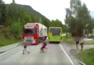 Sociālajā tīklā "Twitter" un citviet internetā popularitāti iemantojis videoreģistratora ieraksts, kurā redzams, ka transporta uzņēmuma no Latvijas "Kreiss" vadītājs par mata tiesu izvairās no uz ceļa uzskrējuša bērna nobraukšanas.
