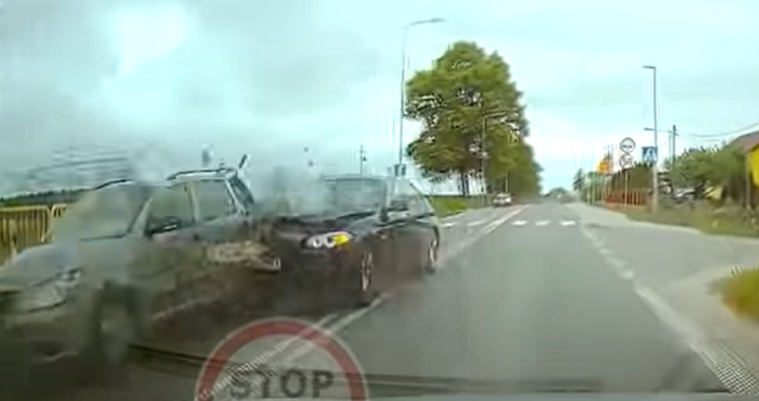 Saskaņā ar video autora teikto, BMW pārvietojies lielā ātrumā.