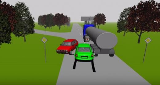 Ko var pilsonis – tūlīt? Noteikumus pārkāpt nedrīkst. Bet sev, savai un līdzpilsoņu drošībai padarīt tos stingrākus taču drīkst? Kāpēc izmantot noteikumu atļauju apdzīt krustojumā, ja tā slēpj sevī ne tikai šajā sižetā redzamās briesmas, bet vēl kādus trīs vai četrus iespējamus konfliktus? Tādēļ, negaidot izmaiņas likumos, papildus zīmes un līnijas, “labas prakses” likumos rakstām – NEAPDZEN KRUSTOJUMĀ! Cik vienkārši. Un bildītē redzamā zilā auto tur nebūtu. Un avārijas nebūtu.