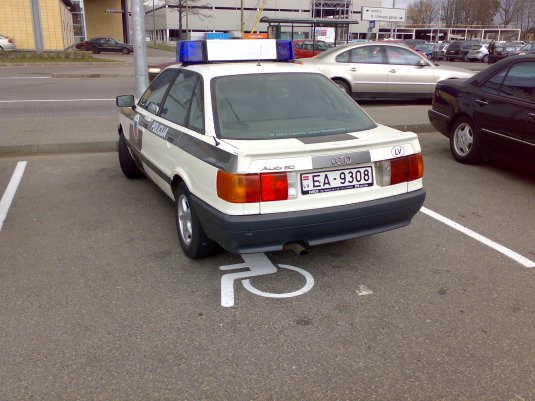 Vienreiz pie Spices,tā pati vieta. Piebraucu, nolieku mašīnu tālajā galā, eju uz veikalu. Skatos, invalīdu stāvvietā kārtojas iekšā policijas buss...aizeju atpakaļ uz mašīnu,paņemu fotoaparātu, eju un fotografēju. ''milicis'' nebij paspējis aiziet, redzēja,ka fotografēju, ļoti mudīgi iekāpa atpakaļ un aizbrauca prom :D