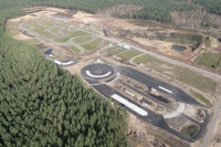 * asfaltēti laukumi, sadzīves un tiesnešu ēkas, tribīnes ar 5000 sēdvietām,