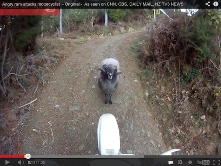 Motobraucējs sastop aunu un tālāk viss notiek kā parunā par diviem āžiem, kas satiekas uz vienas laipas.