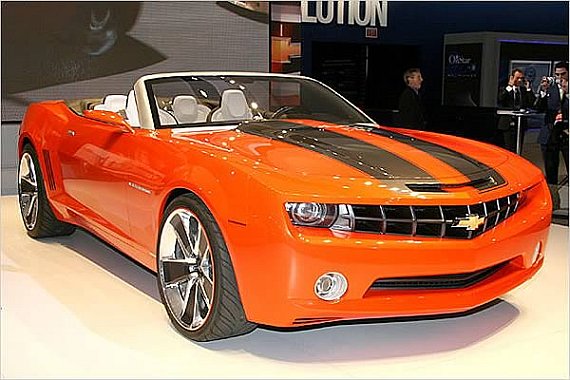 Vēl viens kabriolets – tikai šis ir GM speciālistu roku darbs. Lai arī pati Camaro kupeja parādīsies tikai pēc pusotra gada, kompānija nolēmusi pakairināt topošo pircēju interesi arī ar variantu bez jumta. Košais krāsojums akcentē atdzimušā Camaro radiatora agresīvās līnijas. Atgādināsim, ka modeļa Chevrolet Camaro ražošana turpinājās no 1967. līdz 2002.gadam un pats auto bija sinonīms amerikāņu superauto.