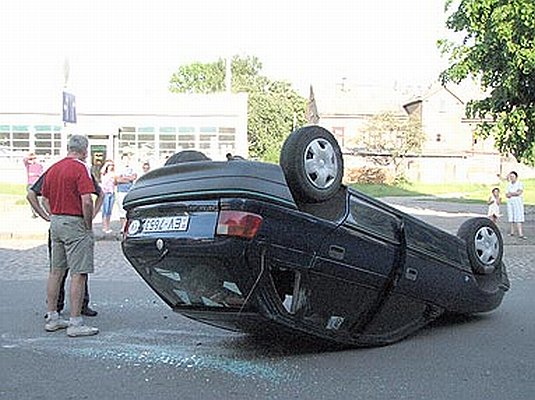 Pēdējo mēnešu laikā mūsu pilsētā noticis jau otrais gadījums, kas uz līdzenas vietas uz jumta tiek apmesta automašīna. Trešdien pēc septiņiem vakarā šāds skats gājējiem un braucējiem pavērās Siena tirgū, Liepajā, kur ar riteņiem gaisā gulēja tumši zilas krāsas automašīna "Opel Astra".