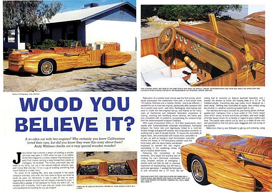 Starp citu, koka automobilis ir funkcionāls – tam uzstādīti divi "Cadillac" markas 8,2 litru V8 dzinēji, no kuriem viens dzen priekšējos, bet otrs – aizmugurējos riteņus. Lai arī tie nedarbojas sinhroni, Nikels apgalvo, ka gaita esot visnotaļ līgana.