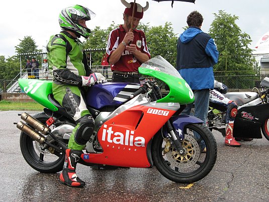 Sacensības tradicionāli atklāja vismazākās  - divtaktu 125 un 250 ccm motociklu klašu apvienotais brauciens. Likteņa ironijas dēļ šīs klases brauciena 15 apļos lija īsti tropiska lietusgāze, kas padarīja braukšanu par cīņu par noturēšanos trase. Vislabāk un ātrāk tas izdevās Garijam Rožkalnam, kurš šosezon ar jauno motociklu rāda atzīstamu sniegumu. Pēc ilgāka pārtraukuma startējot 125 ccm klasē otrai finišu šķērso Kristaps Rutkovskis, kuram Rīgas TT ir pirmā sacīkstes šogad. Baltijas kopvērtējuma otrās vietas īpašnieks igaunis Indreks Lehtasars krīt jau ceturtajā aplī un no cīņas izstājas. Ar 250 klases motociklu braucošais Tāls Meļķis ir līderis tikai līdz pirmajam pagriezienam, kad kļūdainā riepu izvēle spiež izvēlēties uzmanīgāku braukšanas stilu un braucienā finišēt trešajam.