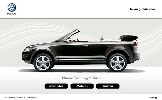 Volkswagen nolēma pajokot ļoti neparastā veidā - savā oficiālajā saitā (volkswagen.es) parādījās liela fotogrāfija, uz kuras attēlots kabriolets uz Touareg bāzes. Pēc nospiešanas uz šo foto atvērās speciāli izveidots saits www.touaregcabrio.com, kas veltīts Touareg Cabrio... Un tikai pēc tam kļūst skaidrs, ka tas viss ir joks.