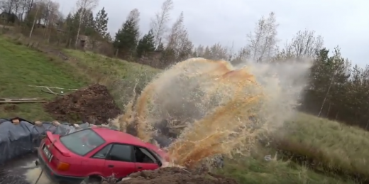 Pensionārs no Latvijas lūdz "Pļiz pres laik" un, it kā, salej bedrē 12 tonnas kolas un pievieno tai 40 kg sodas. Kā var noprast, bedrē tiks iegremdēts viņa vecais "Audi".