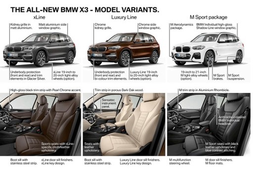 Tagad jaunais modelis ir pieejams trīs dažādos variantos: jau ierastajiem “xLine” un “M Sport” ir pievienojies “Luxury Line”, kas būs piemērots tiem, kuri ir iecienījuši luksus klases automašīnas. Paplašināta arī riteņu izvēle - ierastos 17 collu diskus nomainījuši 18 collu diski, bet izmēru klāsts ir paplašināts līdz pat 21 collai.