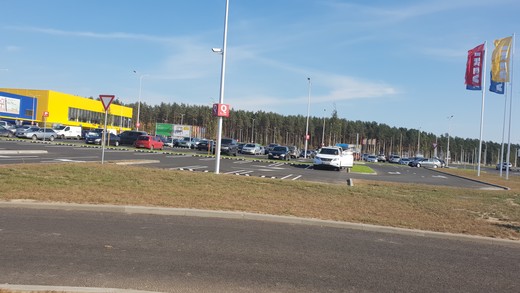 Jaunā Ikea lielveikala stāvlaukums var kalpot par paraugu citiem - plašs laukums, ar uzkrāsotām bultām norādīts braukšanas virziens, pietiekami platas un skaidri atdalītas automašīnu stāvvietas, turklāt ar dubulto līniju, lai var brīvi atvērt durvis (pilnīgs pretstats, piemēram, Barona kvartālam).