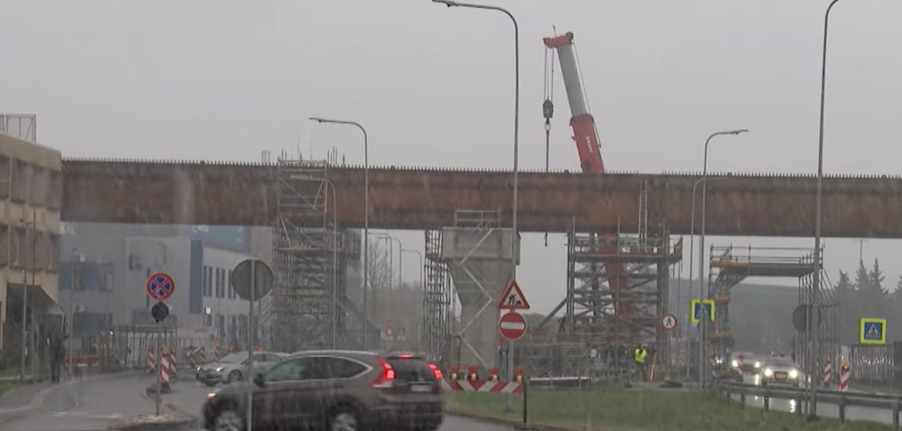 Kravas auto sāk slīdēt atpakaļ un piekabes konteiners uzgāžas taksometram.