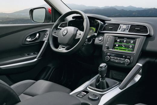 Atkarībā no versijas, "Kadjar" aprīkojumā varēs būt LED lukturi ar "Renault" pēdējo modeļu raksturīgajiem „C” veida dienas gaitas diožu elementiem, salonam izvēlēti taustei tīkami, mīksta pārklājuma materiāli. Veidojot salonu "Renault" centies distancēties no "Qashqai," kas izdevies tikai daļēji – abiem joprojām vienādi durvju rokturi, turklāt kokpita iekārtojums ir teju identisks – visādā ziņā slēdžu, pogu un kloķu izvietojums ir identisks. No papildaprīkojuma klāsta varēs izvēlēties arī apjomīga izmēra stikla jumtu (1,4 kvadrātmeri) un multimediju kompleksu R-Link ar septiņu collu ekrānu, kura funkcijas varēs pārvaldīt arī ar balsi.