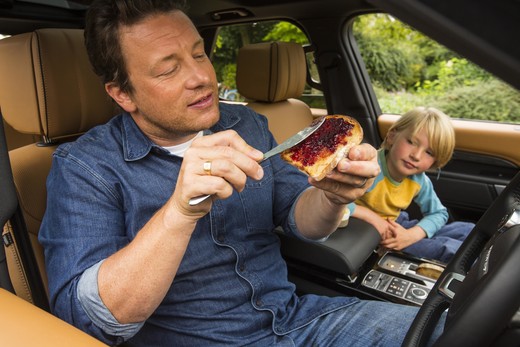 Džeimija pēc pasūtījuma izgatavotais ģimenes apvidus automobilis ir aprīkots ar dažādām virtuves ierīcēm, tai skaitā lēnvāres katlu, grilu, saldējuma mašīnu, olīveļļas dozatoru un pat sviesta kūlēju.