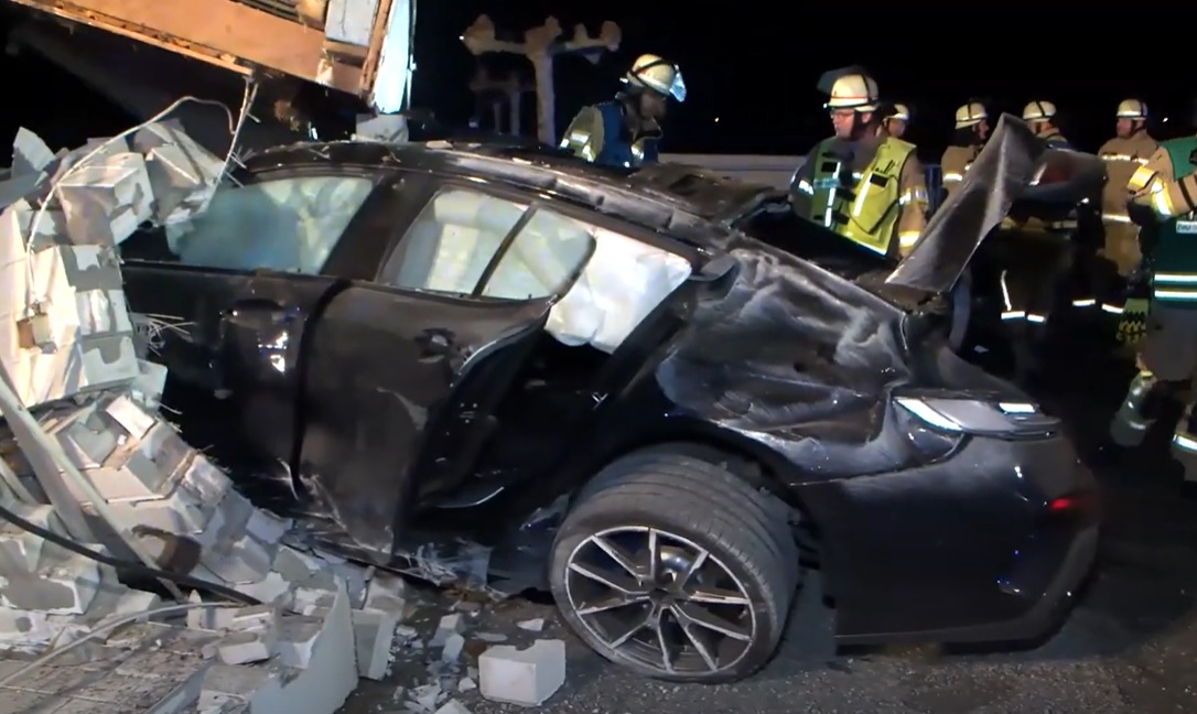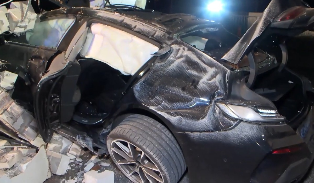 Trīs jaunieši, kas atradās automašīnā, guva nelielus ievainojumus un tika nogādāti slimnīcā. Kā pastāstīja glābēji, divi no viņiem no spēkrata izkļuva paši, bet vadītājam bija nepieciešama palīdzība, pirms tam nofiksējot to, kas bija palicis pāri no ēkas jumta.