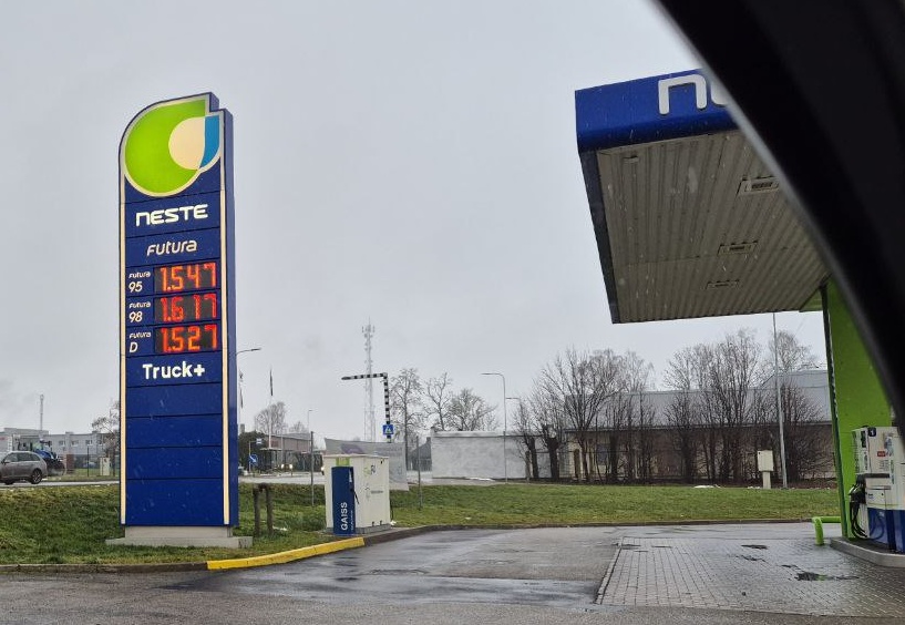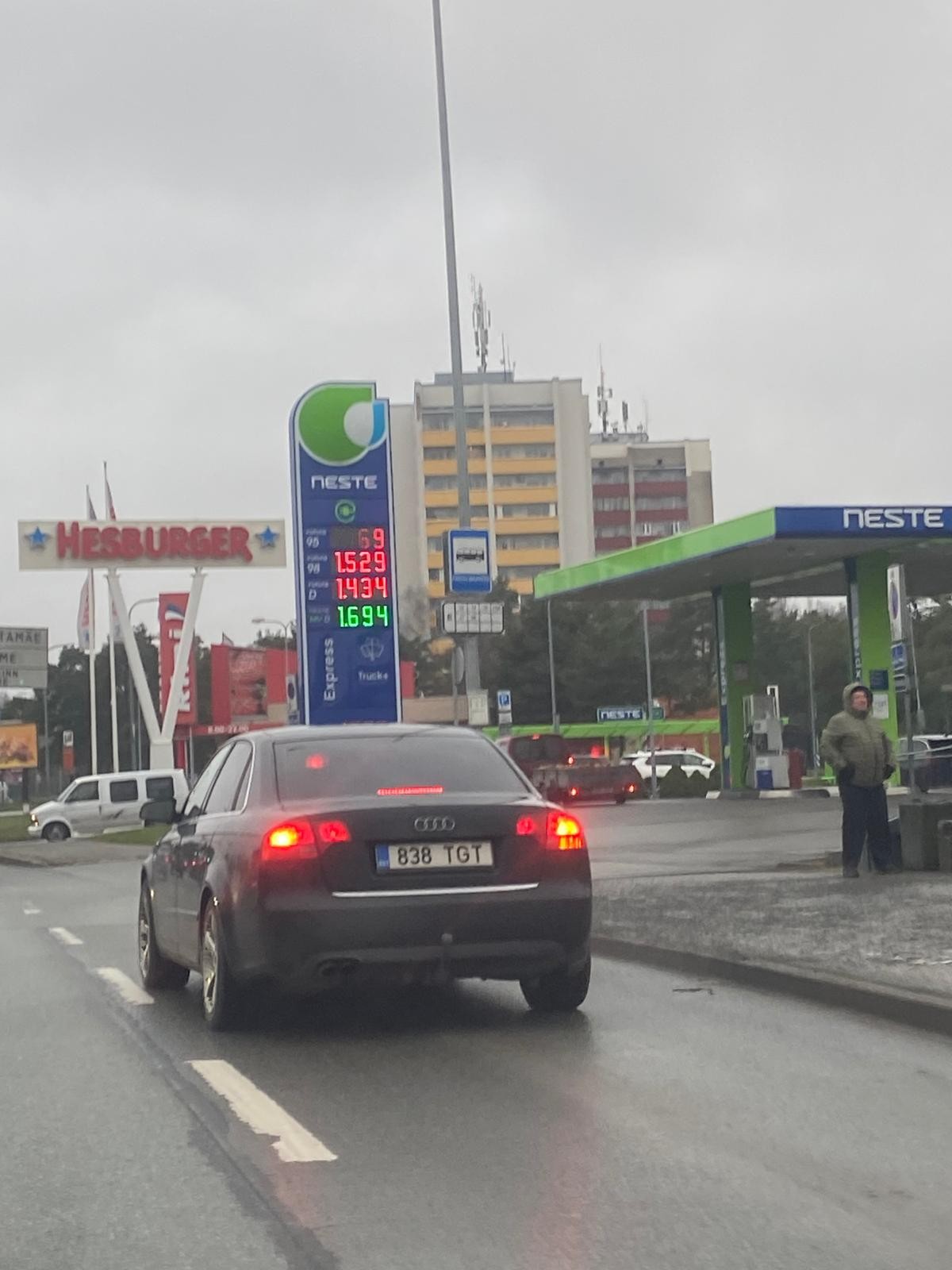 Atšķirība starp degvielas cenām Igaunijā un Latvijā arvien ir labi jūtama, starpībai sasniedzot gandrīz 10 centus - attēlos redzamās cenas fiksētas 30. novembrī Tallinā un 3. decembrī Gulbenē.