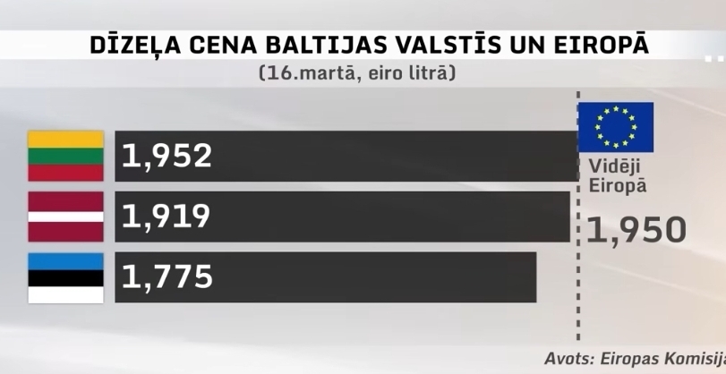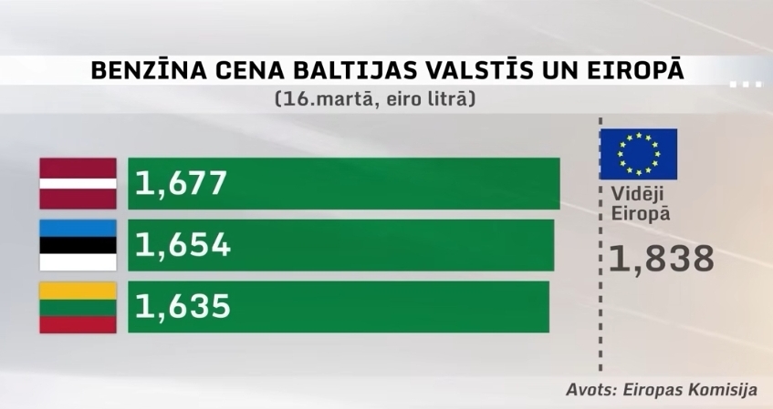 - 16.3.2026 Dīzelis 1.927 un 95 benzīns 1.677 EUR (+3 kopā 0.39 + par 23.40 EUR uz 60L tvertni)