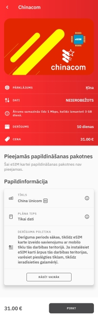 Nopirku šo eSim mobilajiem internetam Ķīnā.