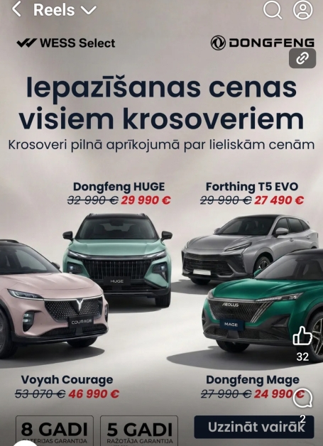 • Dongfeng HUGE bija 32 990€ uz 29 990 €