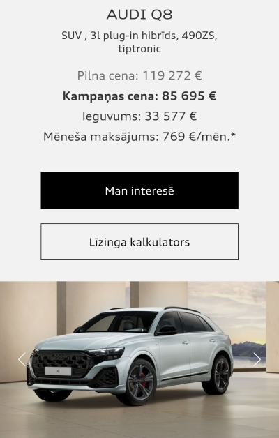 Audi Q8 SUV 55 TFSI e ar 33 000 eiro atlaidi, vai tas ir labs premium piedāvājumā