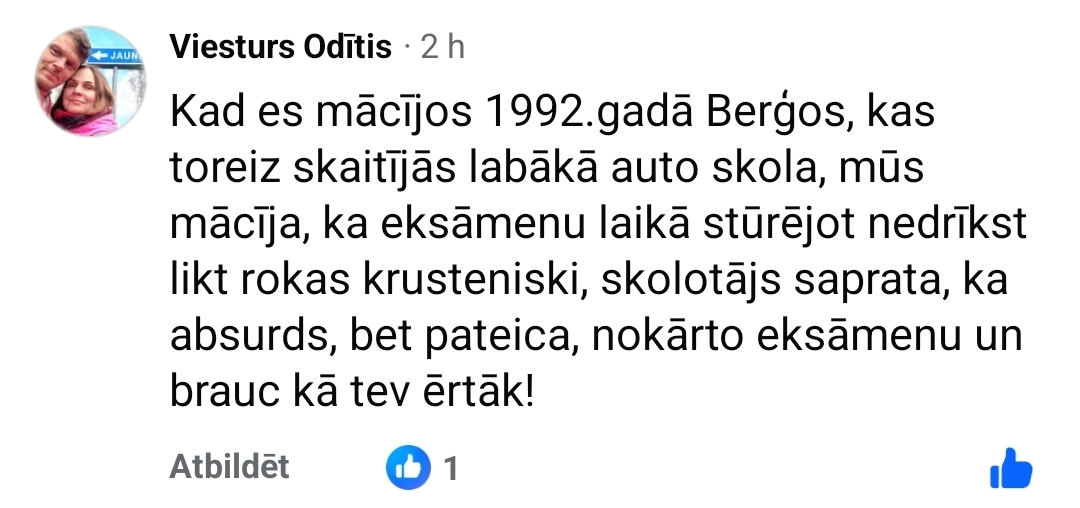 1. Ir kārtojuši CSDD braukšanas eksāmenu un saņēmuši aizrādījumu par roku krustošanu.