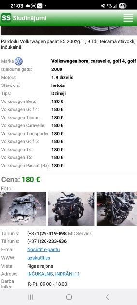 Nu jā , taisnība laikam ir , jo tie 1,9 ir tik labi ka tos tàpat vien neviens nepārdod un ja to dara tad par kosmosa cenu , ja ir vecais dzinējs tad labāk uztaisīt remontu bet ja ir laiks gaidīt .