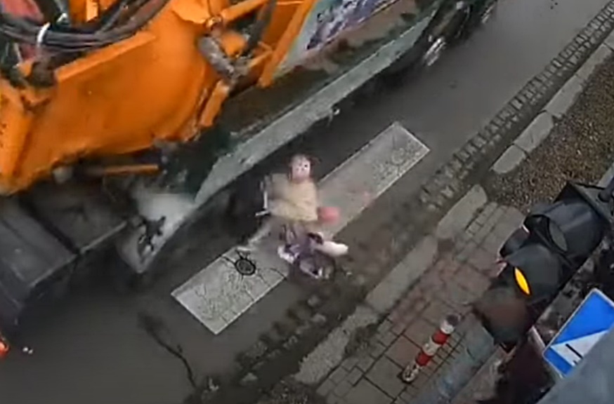 Mazais riteņbraucējs izstūrē uz gājēju pārejas tieši tajā brīdī, kad garām brauc smagais auto. Komentāros teikts, ka laimīgā kārtā, bērns nav cietis. Lasīt vairāk
