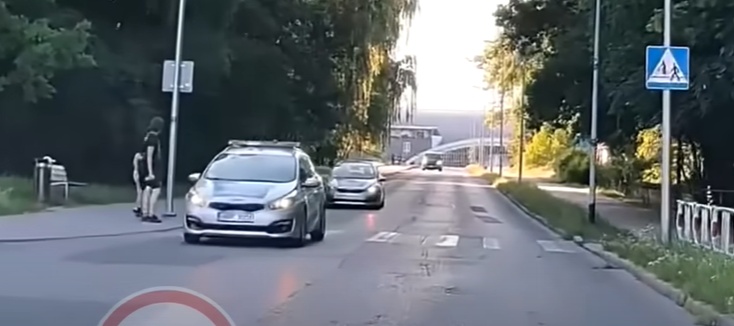 Pirmā policijas ekipāža neapstājas, lai gan redz gājējus, kas pienākuši pie pārejas. Otrs automobilis turpretim apstājas un gājējus palaiž. Komentāros lasāmi absolūti pretēji viedokļi - vieni domā, ka arī pirmajai ekipāžai vajadzēja apstāties, citi uzskata, ka nekādā gadījumā to nevajadzēja darīt. Lasīt vairāk