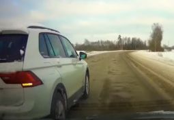 Filmētāju apdzen kāds cits autovadītājs, kas nepietiekamas redzamības apstākļos nebaidās braukt ātrāk. Lasīt vairāk