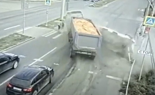 Satiksme pie Apšupes krustojuma ar Liepājas šoseju aizvien ierobežota apgāzušās kravas automašīnas dēļ (PAPILDINĀTS 15:00)