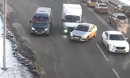 Huyndai vadītājs pārkārtojas neskatoties spoguļos, kas noved pie sadursmes ar kravas furgonu. Lasīt vairāk