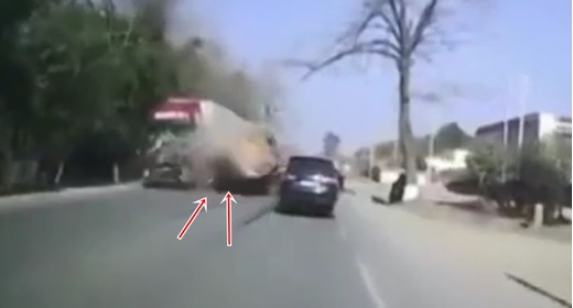 Kravas auto uzsāk apdzīšanu, taču redzot, ka nepaspēs, strauji nospiež bremzes, situāciju padarot vēl sliktāku. Tiek ziņots, ka avārijā neviens nav smagi cietis. Lasīt vairāk