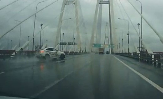 Braucot pārāk ātri lietus laikā BMW X6 vadītājs zaudē kontroli uz satiksmes pārvada un divreiz atsitās pret nožogojuma margām, kas viņu paglābj no daudz lielākām nepatikšanām. Lasīt vairāk