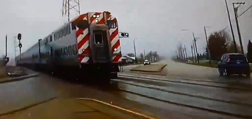 Visiem deg zaļais signāls, tādēļ arī video autors tikai pēdējā mirklī pamana, ka no kreisās puses tuvojas vilciens Lasīt vairāk