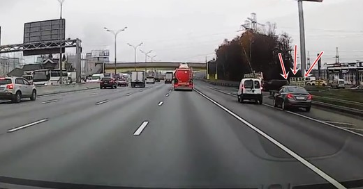 Joslu mainītājs ar Kia Solaris veikli lavierē starp rindām, taču, mēģinot izspraukties pa nomali, netiek pamanīts un piedzīvo avāriju. Lasīt vairāk