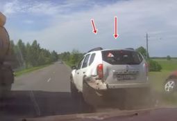 Pretimbraucošais "SsangYong" apvidus auto neaprēķina apdzīšanas manevram nepieciešamo laiku, kā rezultātā filmētājam nākas strauji bremzēt un pagriezt malā. Lasīt vairāk