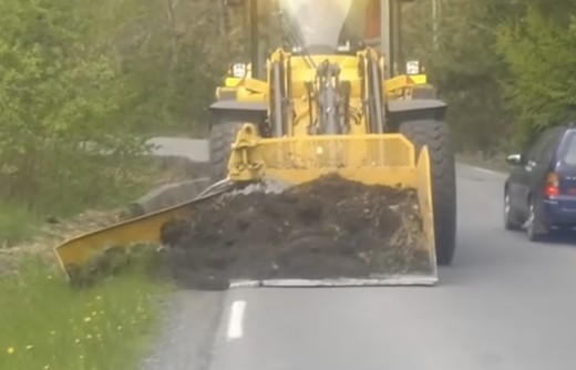 Greideris, kas braucot uz vienu pusi noņem ceļa apmales apaugumu, bet atgriežoties izlīdzina noņemto kārtu un sastumj to atpakaļ, šajā gadījumā aizvietots ar traktoru, kas apauguma slāni noņem ar speciālu kausu un kad tas pilns, ieber saturu automašīnā. Lasīt vairāk