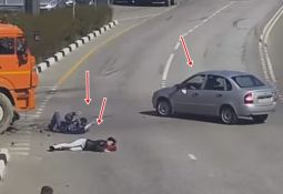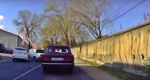 Griežoties pa kreisi, "Chevrolet" vadītājs nedaudz patraucē "Audi", kura vadītājs uz karstām pēdām griež savu spēkratu riņķī, lai panāktu pārkāpēju. Lasīt vairāk