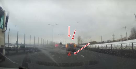 Video autors apgalvo, ka avārijas zīme nebija novietota pienācīgā attālumā no salūzušā auto. Lasīt vairāk