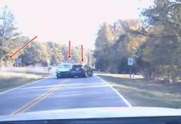 Vadītājs ar balto "Mitsubishi Outlander" veic agresīvu apdzīšanas manevru un piespiež kļūdīties sievieti pie "Suzuki" stūres. Mašīna, kurā brauc divas sievietes un mazi bērni avarē, bet "Mitsubishi" no notikuma vietas aizbrauc (skatīt no 0:40). Lasīt vairāk