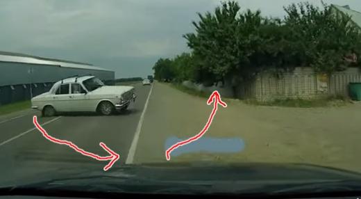 Video autors skaidro, ka VAZ nobremzējis, lai pagrieztos pa kreisi, bet ""Volga" vadītājs to pamanījis par vēlu - viņš strauji nospiedis bremzes un automašīna nekontrolēti ieslīdējusi pretējā joslā. Video autoram paveicies, jo viņš izbēdzis gan no saslīdējušās "Volga," gan ķieģeļu sētas. Lasīt vairāk