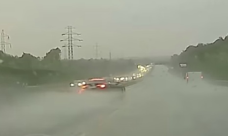 Audi vadītājs neņem vērā bīstamos braukšanas apstākļus un mēģina braukt spēcīga lietus apstākļos tāpat kā pa sausu asfaltu. Lasīt vairāk
