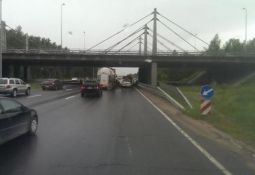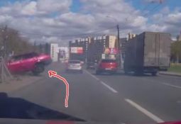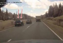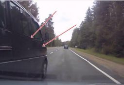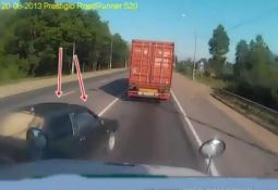Video autoram izdodas izvairīties no sadursmes ar saslīdējušu degvielas vedēju. Lasīt vairāk