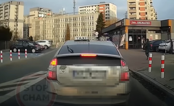 Taksometra šofera manevru filmētājs "apsveic" ar nepārtrauktu taurēšanu, tādēļ konflikts tik ātri nebeidzas. Lasīt vairāk