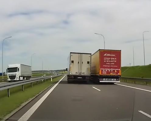 Video autors nofilmējis situāciju, kur viens kravinieks cenšas apsteigt otru, taču cieš neveiksmi un spiests atkāpties. Lasīt vairāk